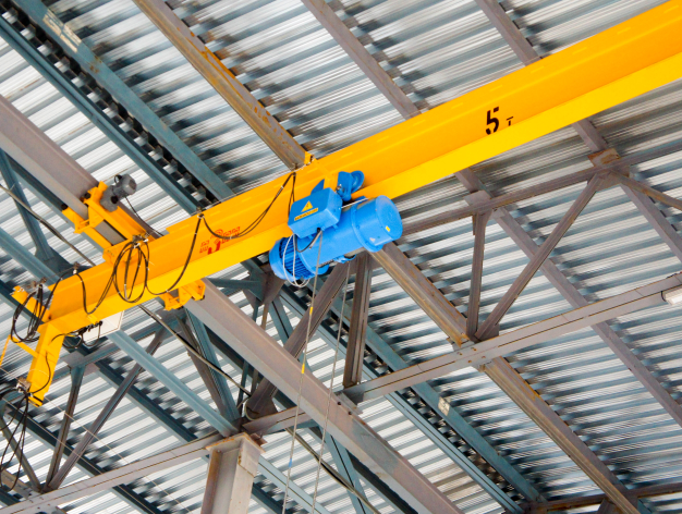 Кран-балка подвесная представляет собой сборную металлическую конструкцию. Основной несущий элемент у которой – это рама, изготовленная из специальной марки стали с повышенной ударной вязкостью. Рама прикреплена к приводным тележкам, которые перемещаются по направляющим путям – нижним полкам двутавров. Данный тип грузоподъемного оборудования размещается в закрытых помещениях или на площадках под навесами, что позволяет обслуживать всю рабочую площадь.